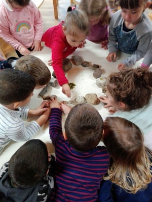 Negli spazi della scuola i bambini trovano materiali specifici e vari: una "miniera" dove scoprire "tesori" manipolabili, duttili all'azione, trasformabili... Soprattutto scoprono, conoscono, imparano, interagiscono, fanno esperienza, nel contatto diretto con la realtà tipica dell'ambiente fisico e umano che li circonda.