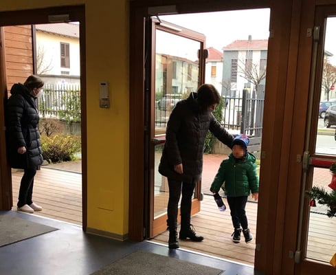 Ogni giorno i bambini vengono accolti dalle proprie insegnanti o dall'educatrice del pre scuola. Questo momento è fondamentale per aiutare i bambini ad elaborare serenamente il distacco dalla famiglia.