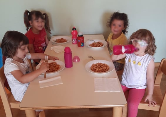 Dopo tante energie consumate, bisogna ricaricarsi! Il pranzo è anche una preziosa occasione per l'educazione alimentare (trovare il coraggio di assaggiare, sapersi dosare nei consumi,…) e alla socialità.